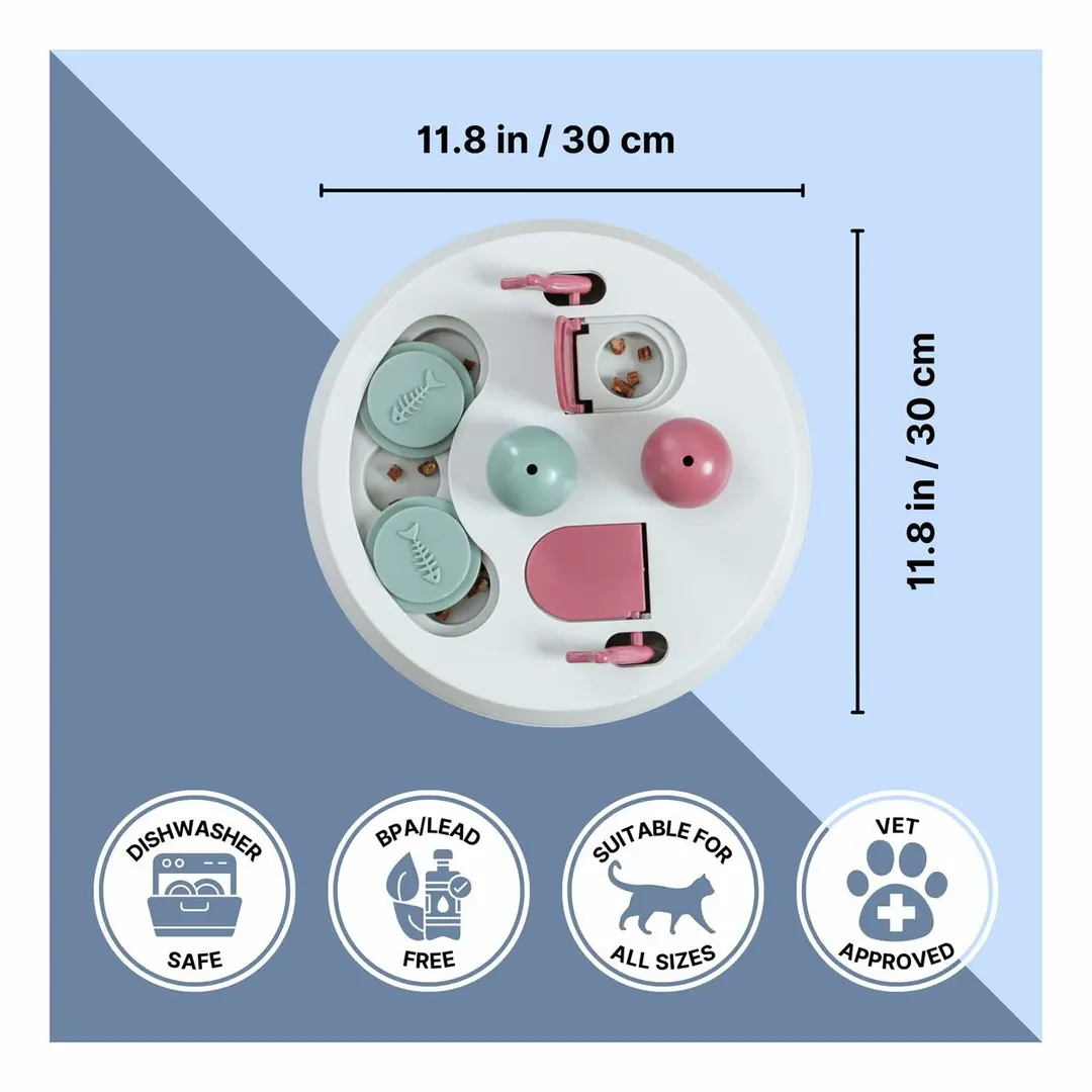 Mordătorul pentru câini Trixie este o jucărie interactivă concepută pentru câini, care stimulează atât divertismentul, cât și antrenamentul prin utilizarea plasticului rezistent. Produsul include o tablă echipată cu două conuri și diverse fante prevăzute cu capace rabatabile și glisante, permițând ascunderea recompenselor pentru a stimula inteligența și activitatea mentală a animalului. Baza este realizată din material antiderapant din cauciuc, asigurând stabilitatea mordătorului în timpul utilizării, chiar și pe suprafețe alunecoase. Este disponibil în mai multe culori, inclusiv mov, roz și gri deschis, facilitând adaptarea la gusturi sau medii diferite. Deși este recomandat în principal pentru câini, această jucărie poate fi potrivită și pentru pisici, oferind versatilitate pentru diverse tipuri de animale de companie. În plus, include un pliant cu instrucțiuni de antrenament care ghidează proprietarii în utilizarea corectă a dispozitivului pentru a susține dezvoltarea cognitivă și independența animalului. Din cauza unei modificări recente a culorii articolului, consumatorul poate primi aleatoriu modelul cu nuanța anterioară sau cea nouă până la reînnoirea stocului. Cu aceste caracteristici, mordătorul Trixie reprezintă o soluție practică și durabilă pentru a stimula inteligența și bunăstarea fizică a câinilor și pisicilor în timpul jocului și învățării.